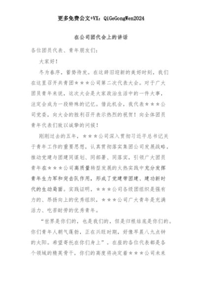 【七哥公文】2025年:在公司团代会上的讲话+更多免费公文+VX:QiGeGongWen2024+更多免费公文+VX:QiGeGongWen2024
