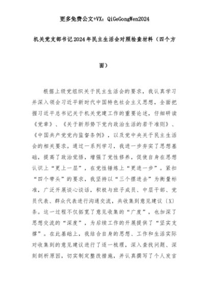 【七哥公文】2025年:机关党支部书记2024年民主生活会对照检查材料(四个方面)+更多免费公文+VX:QiGeGongWen2024+更多免费公文+VX:QiGeGongWen2024