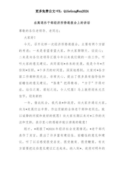 【七哥公文】2025年:在离退休干部经济形势通报会上的讲话+更多免费公文+VX:QiGeGongWen2024+更多免费公文+VX:QiGeGongWen2024
