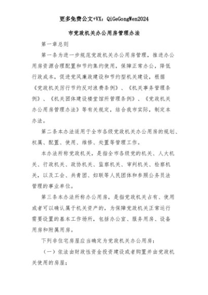【七哥公文】2025年:市党政机关办公用房管理办法+更多免费公文+VX:QiGeGongWen2024+更多免费公文+VX:QiGeGongWen2024