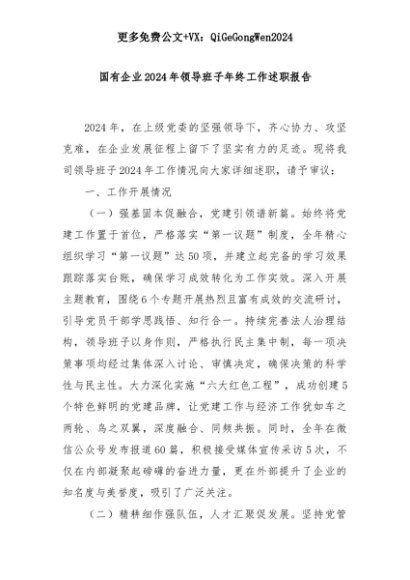 【七哥公文】2025年:国有企业2024年领导班子年终工作述职报告+更多免费公文+VX:QiGeGongWen2024+更多免费公文+VX:QiGeGongWen2024