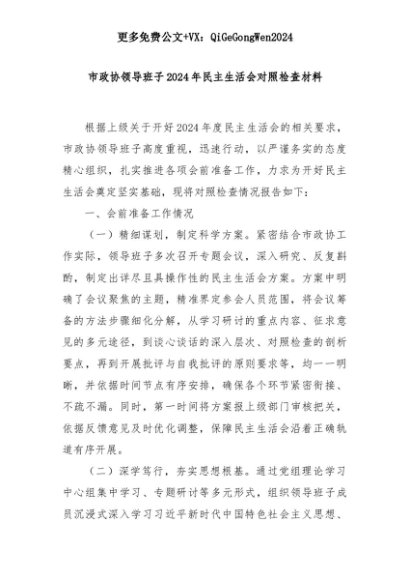 【七哥公文】2025年:市政协领导班子2024年民主生活会对照检查材料+更多免费公文+VX:QiGeGongWen2024+更多免费公文+VX:QiGeGongWen2024