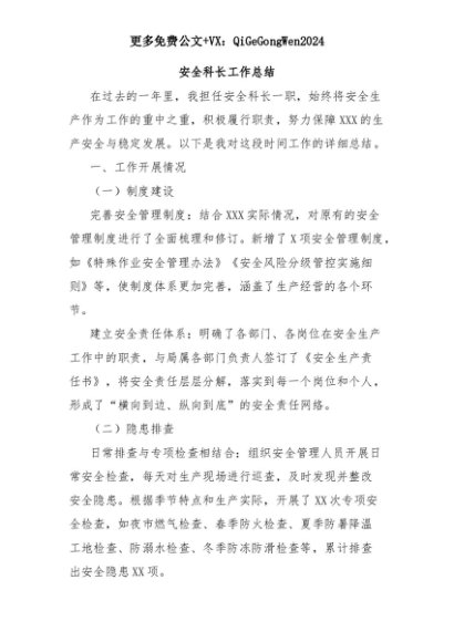 【七哥公文】2025年:安全科长工作总结+更多免费公文+VX:QiGeGongWen2024+更多免费公文+VX:QiGeGongWen2024
