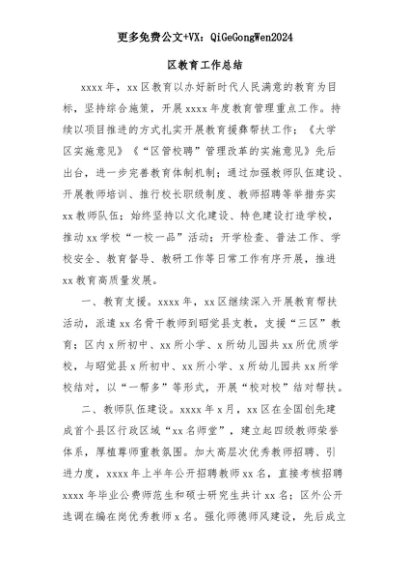 【七哥公文】2025年:区教育工作总结+更多免费公文+VX:QiGeGongWen2024+更多免费公文+VX:QiGeGongWen2024