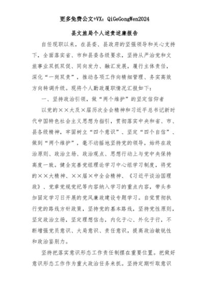 【七哥公文】2025年:县文旅局个人述责述廉报告+更多免费公文+VX:QiGeGongWen2024+更多免费公文+VX:QiGeGongWen2024