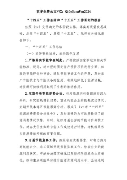 【七哥公文】2025年:“十四五”工作总结和“十五五”工作谋划的报告+更多免费公文+VX:QiGeGongWen2024+更多免费公文+VX:QiGeGongWen2024