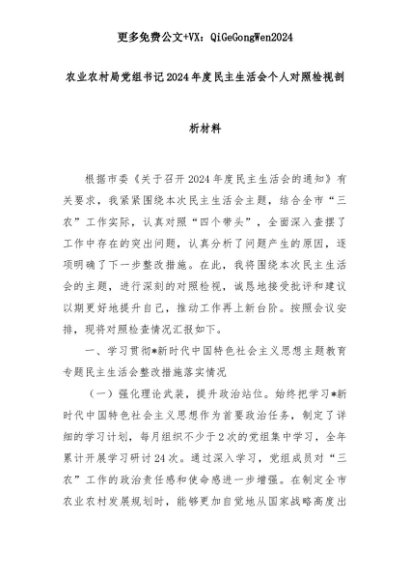 【七哥公文】2025年:农业农村局党组书记2024年度民主生活会个人对照检视剖析材料+更多免费公文+VX:QiGeGongWen2024+更多免费公文+VX:QiGeGongWen2024