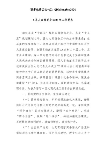 【七哥公文】2025年:X县人大常委会2025年工作要点+更多免费公文+VX:QiGeGongWen2024+更多免费公文+VX:QiGeGongWen2024