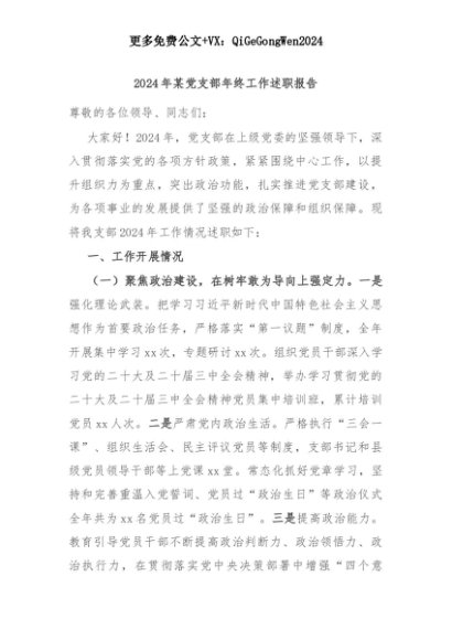 【七哥公文】2025年:2024年某党支部年终工作述职报告+更多免费公文+VX:QiGeGongWen2024+更多免费公文+VX:QiGeGongWen2024