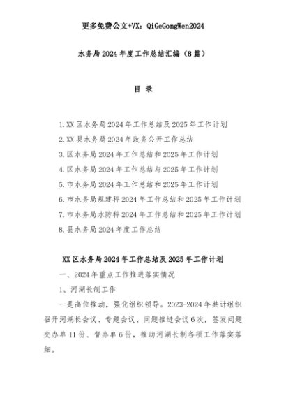 【七哥公文】2025年:(8篇)水务局2024年度工作总结汇编+更多免费公文+VX:QiGeGongWen2024+更多免费公文+VX:QiGeGongWen2024