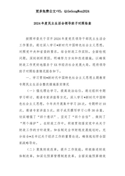 【七哥公文】2025年:2024年度民主生活会领导班子对照检查+更多免费公文+VX:QiGeGongWen2024+更多免费公文+VX:QiGeGongWen2024