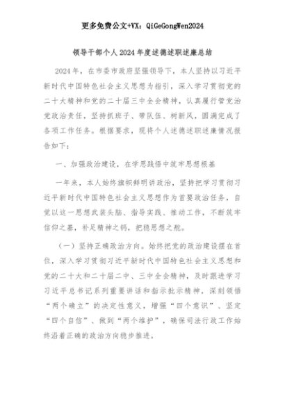 【七哥公文】2025年:领导干部个人2024年度述德述职述廉总结+更多免费公文+VX:QiGeGongWen2024+更多免费公文+VX:QiGeGongWen2024