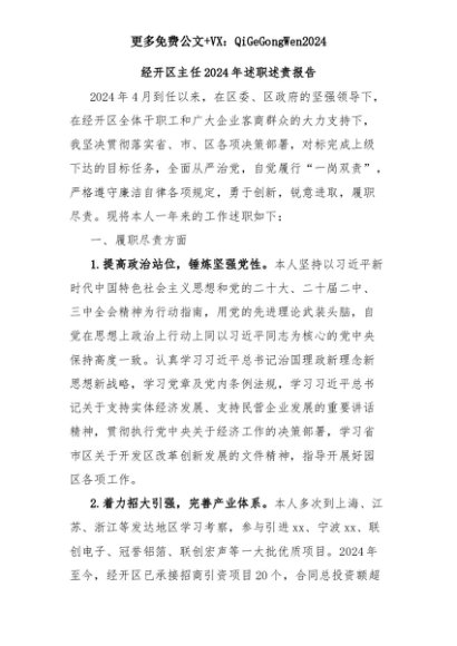 【七哥公文】2025年:经开区主任2024年述职述责报告+更多免费公文+VX:QiGeGongWen2024+更多免费公文+VX:QiGeGongWen2024