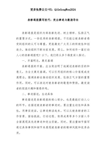【七哥公文】2025年:表彰通报撰写技巧:突出事迹与激励导向+更多免费公文+VX:QiGeGongWen2024+更多免费公文+VX:QiGeGongWen2024
