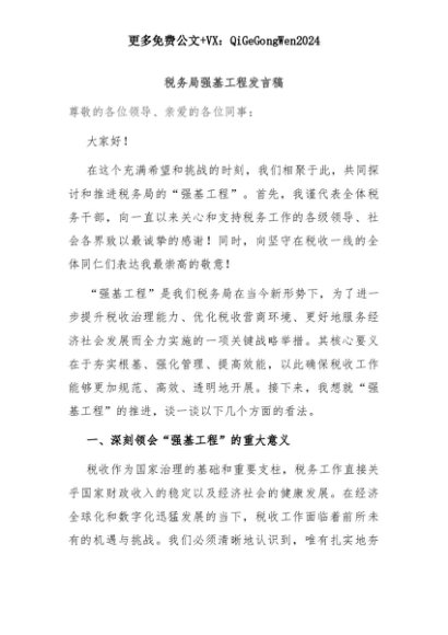 【七哥公文】2025年:税务局强基工程发言稿+更多免费公文+VX:QiGeGongWen2024+更多免费公文+VX:QiGeGongWen2024