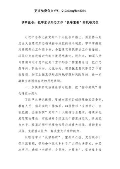 【七哥公文】2025年:调研报告:把牢意识形态工作“极端重要”的战略定位+更多免费公文+VX:QiGeGongWen2024+更多免费公文+VX:QiGeGongWen2024