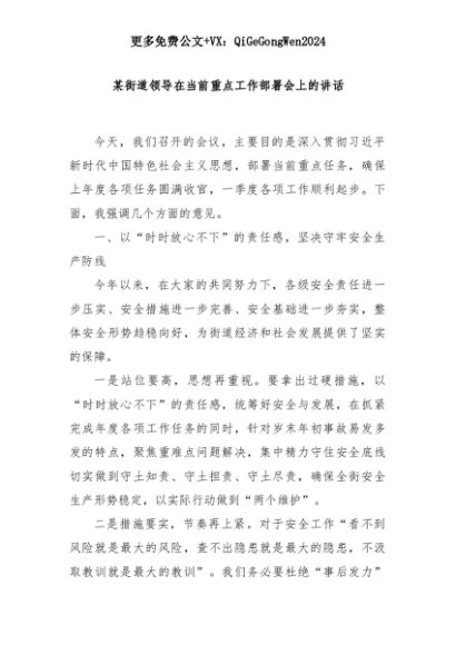 【七哥公文】2025年:某街道领导在当前重点工作部署会上的讲话+更多免费公文+VX:QiGeGongWen2024+更多免费公文+VX:QiGeGongWen2024