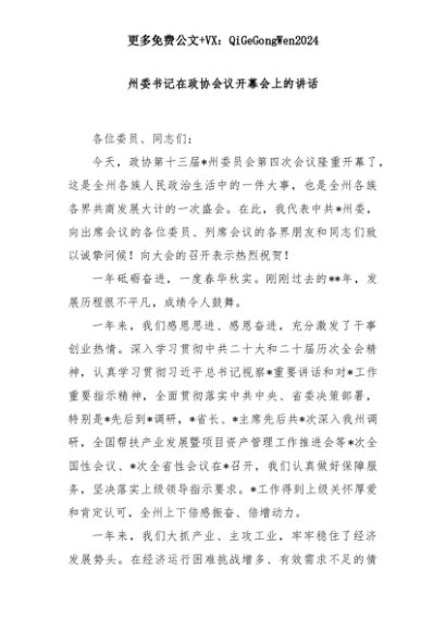 【七哥公文】2025年:州委书记在政协会议开幕会上的讲话+更多免费公文+VX:QiGeGongWen2024+更多免费公文+VX:QiGeGongWen2024