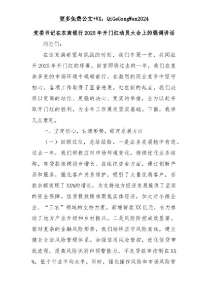 【七哥公文】2025年:在的战果,把“开门红”干成“四季红”,为实现我行高质量发展做出新的更大贡献!+更多免费公文+VX:QiGeGongWen2024+更多免费公文+VX:QiGeGongWen2024