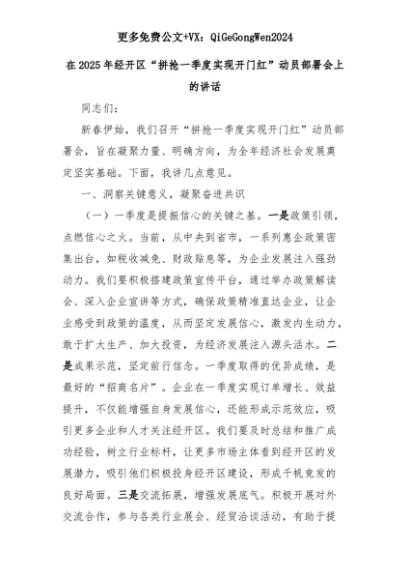 【七哥公文】2025年:在2025年经开区“拼抢一季度实现开门红”动员部署会上的讲话+更多免费公文+VX:QiGeGongWen2024+更多免费公文+VX:QiGeGongWen2024