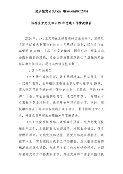 【七哥公文】2025年:国有企业党支部2024年党建工作情况报告+更多免费公文+VX:QiGeGongWen2024+更多免费公文+VX:QiGeGongWen2024