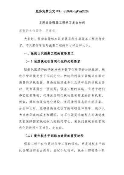 【七哥公文】2025年:县税务局强基工程学习发言材料+更多免费公文+VX:QiGeGongWen2024+更多免费公文+VX:QiGeGongWen2024