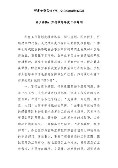【七哥公文】2025年:培训讲稿:如何做好年度工作筹划+更多免费公文+VX:QiGeGongWen2024+更多免费公文+VX:QiGeGongWen2024