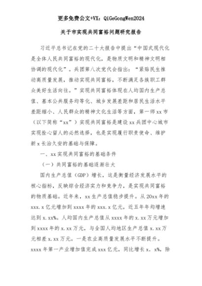 【七哥公文】2025年:关于市实现共同富裕问题研究报告+更多免费公文+VX:QiGeGongWen2024+更多免费公文+VX:QiGeGongWen2024