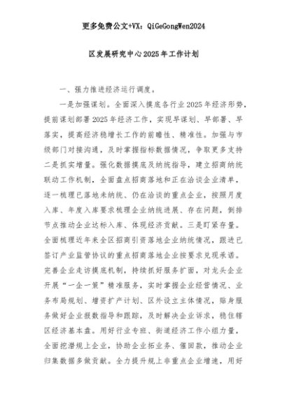 【七哥公文】2025年:区发展研究中心2025年工作计划+更多免费公文+VX:QiGeGongWen2024+更多免费公文+VX:QiGeGongWen2024