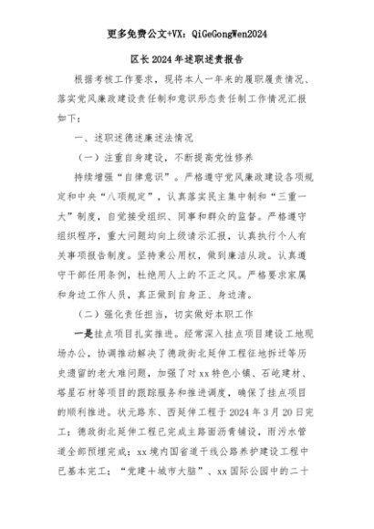 【七哥公文】2025年:区长2024年述职述责报告+更多免费公文+VX:QiGeGongWen2024+更多免费公文+VX:QiGeGongWen2024