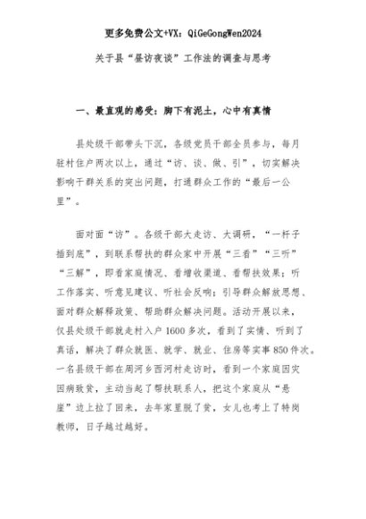 【七哥公文】2025年:关于县“昼访夜谈”工作法的调查与思考+更多免费公文+VX:QiGeGongWen2024+更多免费公文+VX:QiGeGongWen2024