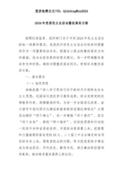 【七哥公文】2025年:2024年党委民主生活会整改落实方案+更多免费公文+VX:QiGeGongWen2024+更多免费公文+VX:QiGeGongWen2024