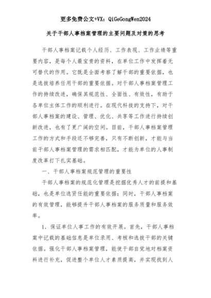 【七哥公文】2025年:关于干部人事档案管理的主要问题及对策的思考+更多免费公文+VX:QiGeGongWen2024+更多免费公文+VX:QiGeGongWen2024