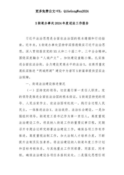 【七哥公文】2025年:X街道办事处2024年度述法工作报告+更多免费公文+VX:QiGeGongWen2024+更多免费公文+VX:QiGeGongWen2024