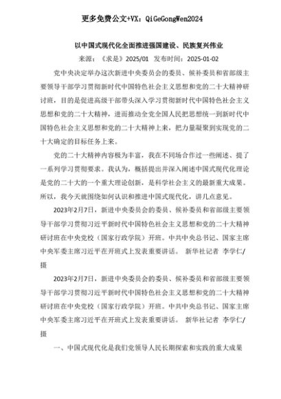 【七哥公文】2025年:以中国式现代化全面推进强国建设、民族复兴伟业+更多免费公文+VX:QiGeGongWen2024+更多免费公文+VX:QiGeGongWen2024
