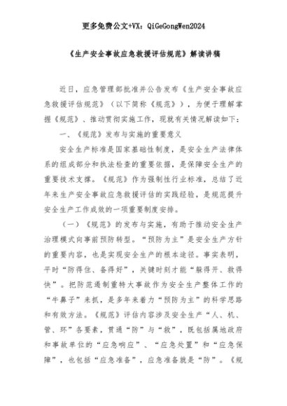 【七哥公文】2025年:《生产安全事故应急救援评估规范》解读讲稿+更多免费公文+VX:QiGeGongWen2024+更多免费公文+VX:QiGeGongWen2024