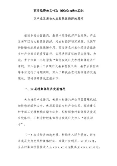 【七哥公文】2025年:以产业发展壮大农村集体经济的思考+更多免费公文+VX:QiGeGongWen2024+更多免费公文+VX:QiGeGongWen2024