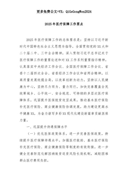 【七哥公文】2025年:2025年医疗保障工作要点+更多免费公文+VX:QiGeGongWen2024+更多免费公文+VX:QiGeGongWen2024