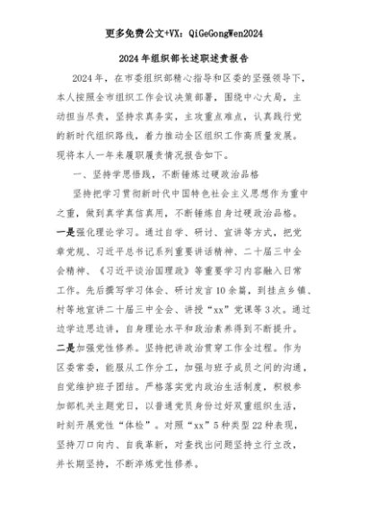 【七哥公文】2025年:2024年组织部长述职述责报告+更多免费公文+VX:QiGeGongWen2024+更多免费公文+VX:QiGeGongWen2024