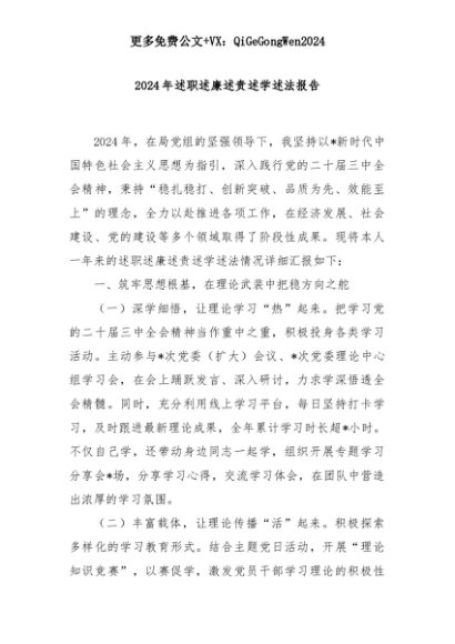 【七哥公文】2025年:2024年述职述廉述责述学述法报告+更多免费公文+VX:QiGeGongWen2024+更多免费公文+VX:QiGeGongWen2024