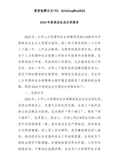 【七哥公文】2025年:2024年度政治生态分析报告+更多免费公文+VX:QiGeGongWen2024+更多免费公文+VX:QiGeGongWen2024