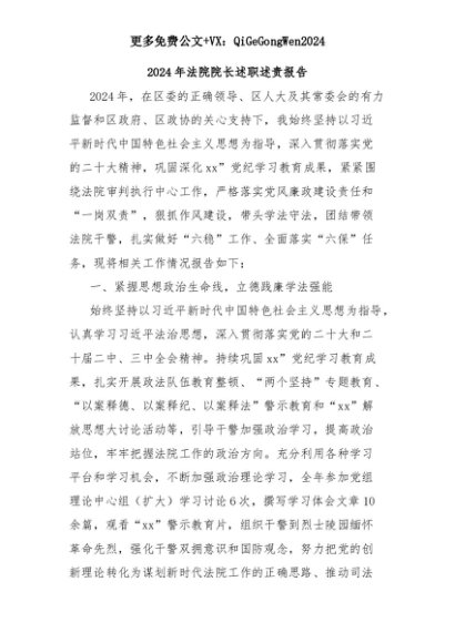 【七哥公文】2025年:2024年法院院长述职述责报告+更多免费公文+VX:QiGeGongWen2024+更多免费公文+VX:QiGeGongWen2024