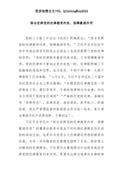 【七哥公文】2025年:综合发挥党的纪律教育约束、保障激励作用+更多免费公文+VX:QiGeGongWen2024+更多免费公文+VX:QiGeGongWen2024