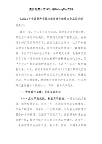 【七哥公文】2025年:在2025年全区重大项目攻坚突破年动员大会上的讲话+更多免费公文+VX:QiGeGongWen2024+更多免费公文+VX:QiGeGongWen2024
