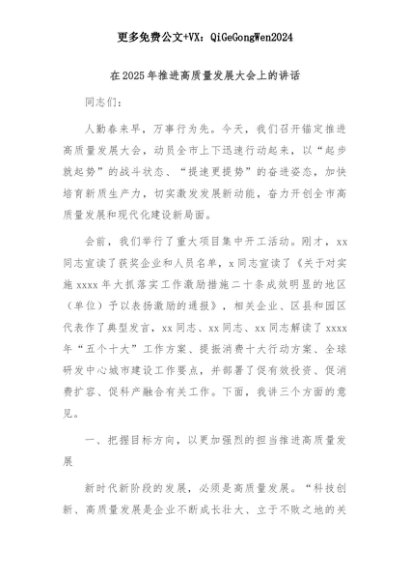 【七哥公文】2025年:在2025年推进高质量发展大会上的讲话+更多免费公文+VX:QiGeGongWen2024+更多免费公文+VX:QiGeGongWen2024