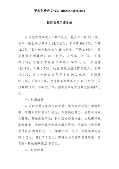 【七哥公文】2025年:区财政局工作总结+更多免费公文+VX:QiGeGongWen2024+更多免费公文+VX:QiGeGongWen2024