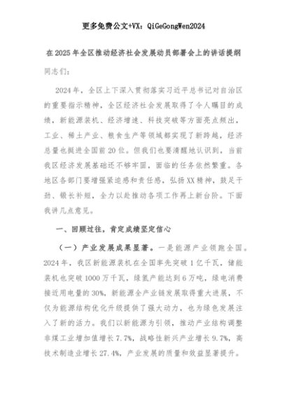 【七哥公文】2025年:在2025年全区推动经济社会发展动员部署会上的讲话提纲+更多免费公文+VX:QiGeGongWen2024+更多免费公文+VX:QiGeGongWen2024