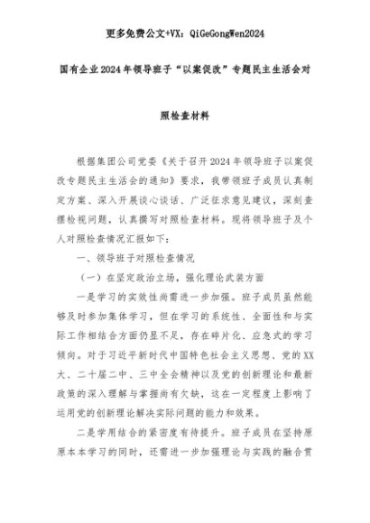 【七哥公文】2025年:国有企业2024年领导班子“以案促改”专题民主生活会对照检查材料+更多免费公文+VX:QiGeGongWen2024+更多免费公文+VX:QiGeGongWen2024