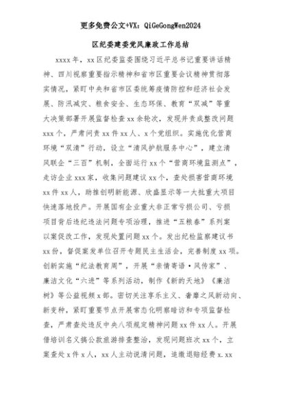 【七哥公文】2025年:区纪委建委党风廉政工作总结+更多免费公文+VX:QiGeGongWen2024+更多免费公文+VX:QiGeGongWen2024