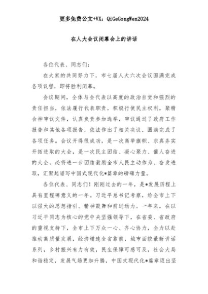 【七哥公文】2025年:在人大会议闭幕会上的讲话+更多免费公文+VX:QiGeGongWen2024+更多免费公文+VX:QiGeGongWen2024